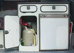 der Gasflasche dient zur Lagerung von Tellern usw. Das größere